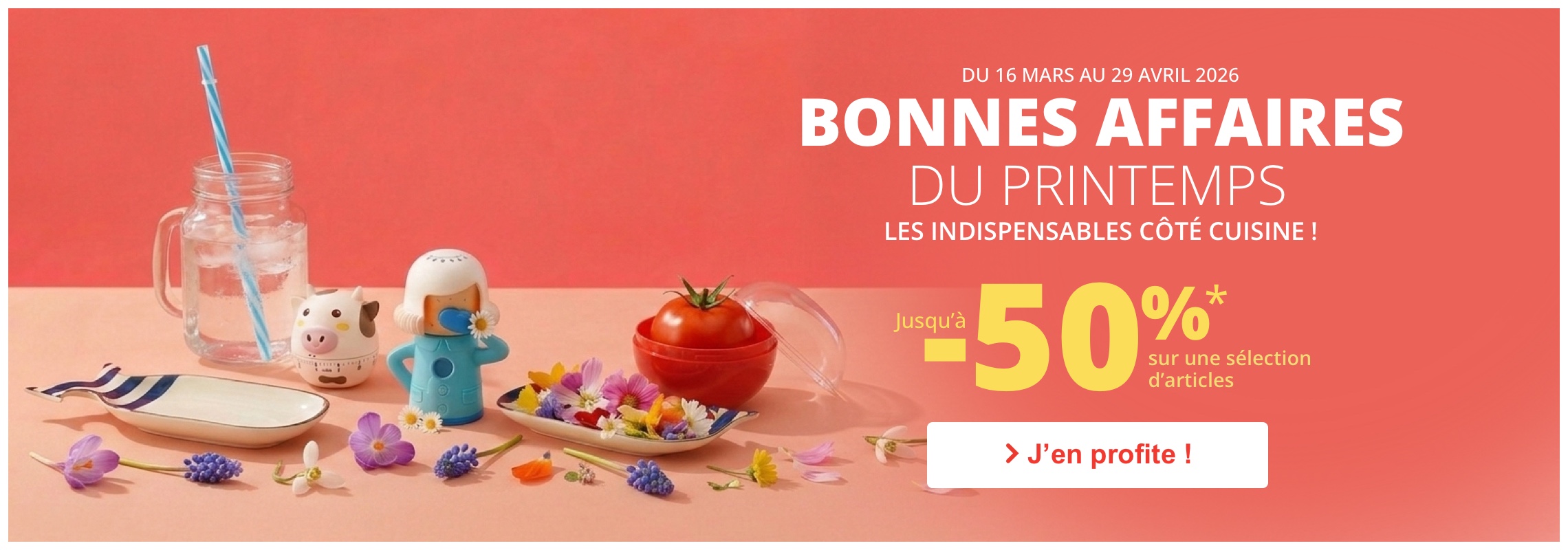 *Les bonnes affaires du printemps, valable du 16/03/2026 au 29/04/2026 dans la limite des stocks disponibles sur une sélection d'articles.